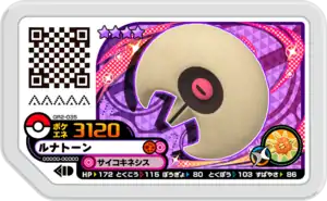 Lunatone (Japanese: ルナトーン Lunatone) is a Grade 4 Pokémon Ga-Olé disk. It is part of the second Grand Rush set.