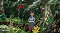 Lush Jungle appeared in Currying Favor and Flavor!, where Ash and Mallow went there in search of a Miracle Seed, which was one of the ingredients for the "Akala Curry". After finding the Miracle Seed in a hollowed-out stump full of Berries, Ash was challenged by Totem Lurantis, who was soon joined by an ally Castform. Using his Litten and Rowlet, Ash battled against the two Pokémon, eventually defeating Castform with Rowlet's Tackle and Lurantis with Litten's Breakneck Blitz. Afterwards, Lurantis awarded Ash with a Grassium Z, and Olivia showed up, revealing that the entire ingredient search had been a part of his trial all along.