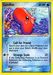 Luvdisc (Japanese: ラブカス Lovecus) is a Water-type Basic Pokémon card. It is part of the EX Emerald expansion.