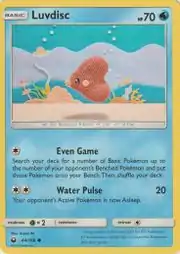 Luvdisc (Japanese: ラブカス Lovecus) is a Water-type Basic Pokémon card. It is part of the Celestial Storm expansion.