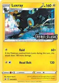 Luxray (Japanese: レントラー Rentorar) is a Lightning-type Stage 2 Pokémon card. It was first released as part of the Rebel Clash expansion.