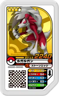 Lycanroc (Japanese: ルガルガン Lugarugan) is a Grade 3 Pokémon Ga-Olé disk. It is part of the fourth set.
