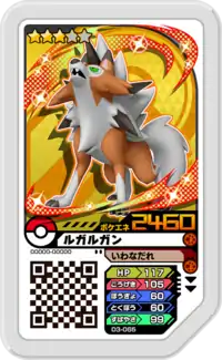 Lycanroc (Japanese: ルガルガン Lugarugan) is a Grade 3 Pokémon Ga-Olé disk. It is part of the third Dash set.