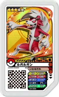 Lycanroc (Japanese: ルガルガン Lugarugan) is a Grade 3 Pokémon Ga-Olé disk. It is part of the fourth Dash set.