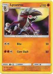Lycanroc (Japanese: ルガルガン Lugarugan) is a Fighting-type Stage 1 Pokémon card. It is part of the Sun & Moon Trainer Kit: Lycanroc & Alolan Raichu.