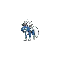 Lycanroc is a canine Pokémon resembling a wolf. It has three possible forms: Midday Form, Midnight Form, and Dusk Form. The first two forms are influenced by Solgaleo and Lunala when bathed in solar or lunar energy. The third form is said to have been influenced by the setting sun of the evening.