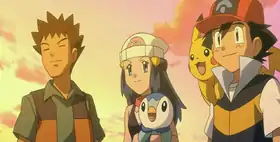 - When Dialga and Palkia's attacks collide and explode, Dawn and Brock's Sudowoodo disappear during the shock-waves going through the town, only to reappear with everyone else on the ground in the following scene when Alice asks if everyone is alright.