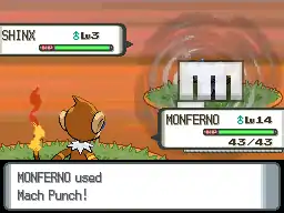 | Monferno rushes up to the opponent and punches it with a powerful blow. | |||