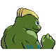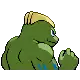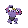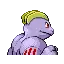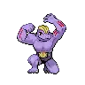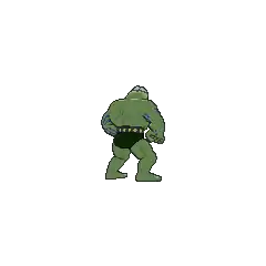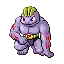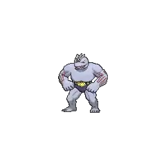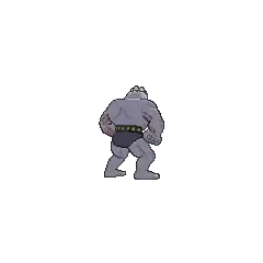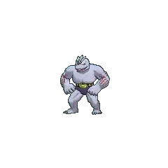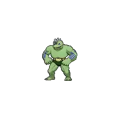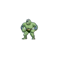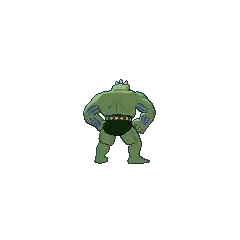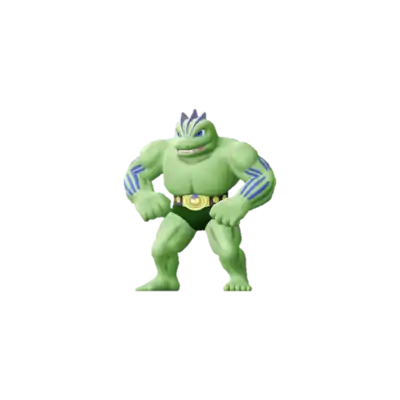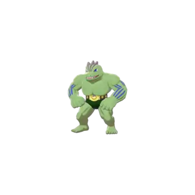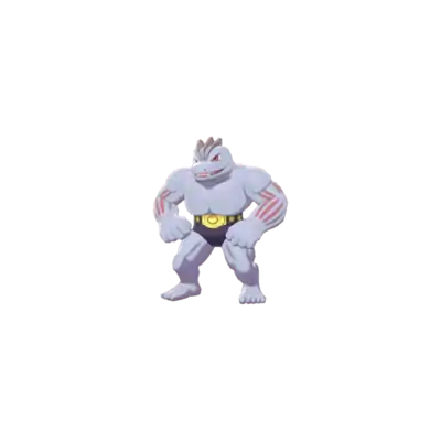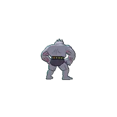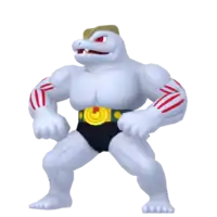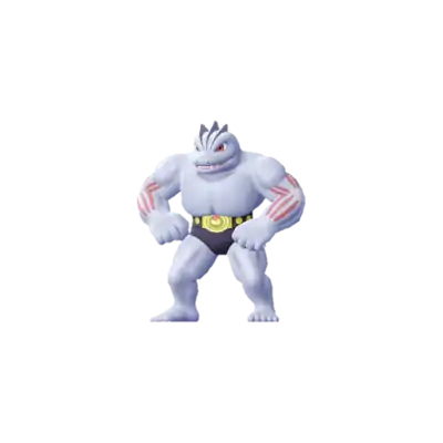 Machoke is a Pokémon of immense strength. Its muscles are as hard as steel, and it is capable of lifting extremely heavy objects with only one finger. Machoke's body is powerful enough to never get tired. Machoke is a popular Pokémon used as a motif for sculptures. In spite of this, it is modest and often helps people with manual labor. The belt it wears regulates its strength, but Machoke removes it when facing a truly powerful opponent. It can be found in the mountains, where it trains daily. In the past, it claimed Low Kick and Vital Throw as signature moves.