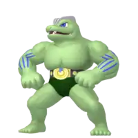 Machoke appears to be based on a bodybuilder or wrestler with some reptilian traits.