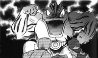 A Machoke appeared in The Beginning of the End with Kyogre & Groudon III as one of Brawly's Pokémon; it is unconfirmed if this Machoke evolved from the Machop he had in Volume 16. Machoke attempted to fight Blaise's fiery illusions at the Lilycove Museum in Volume 20, but failed miserably and ended up getting burned. His Hariyama succeeded in doing so, however.