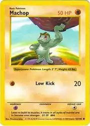 Machop (Japanese: ワンリキー Wanriky) is a Fighting-type Basic Pokémon card. It was first released as part of the Base Set.