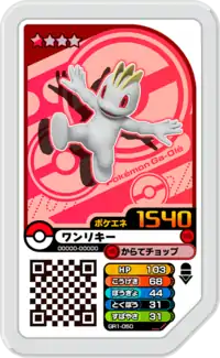 Machop (Japanese: ワンリキー Wanriky) is a Grade 1 Pokémon Ga-Olé disk. It is part of the first Grand Rush set.
