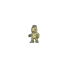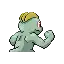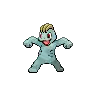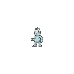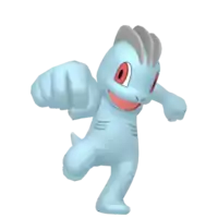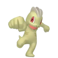 Machop's entire body is covered with muscles that will never tire or cramp. With these muscles, it can lift many times its own body weight. Machop is capable of hurling up to 100 adults. It trains by lifting Graveler every day and becomes more dedicated the more its muscles grow. Machop's muscles can never get sore, no matter what training it does. It spends its time and energy practicing all different forms of martial arts and trying to improve its abilities. Once it feels confident, it challenges Makuhita to a battle. Machop lives in the mountains. In the past, it claimed Low Kick and Vital Throw as signature moves.