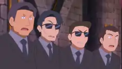 A group of Macro Cosmos's appeared in Sword and Shield, Slumbering Weald!, where they were acting as Oleana's subordinates. One of them followed Goh and Sonia and antagonized them until Sword and Shield: "From Here to Eternatus!", when a battle resulting in his defeat forced the subordinate to retreat. He eventually returned with additional subordinates, only for all of them to be pushed out of the way by Goh and Sonia as they left. They later confronted Sonia at the entrance to the Hammerlocke Stadium, only for Raihan to appear to defend her. In the next episode, Raihan easily defeated all of the employees, forcing them to retreat.
