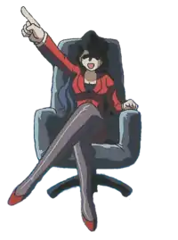 She is the founder of Team Rocket and passed her rank to her son, Giovanni. She controls armies, and gets Elite Squadrons to capture rare Pokémon and auction them off for money. She hates Pokémon, and that is why she has none. She only cares about the money she gets for selling them. The only Pokémon she truly wants, is Mew and Mewtwo. She thinks that with their power, she can rule the Pokémon world. That is why she gave a mission to her best woman, Miyamoto, to capture Mew and brainwash it. However, it would appear that Miyamoto ended up dying in an avalanche, while Madame Boss was succeeded by her son some years later.