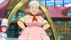 Madame Catherine first appeared in Summer of Discovery!. She ordered Team Rocket, who had gone undercover as cooks, to prepare a meal for the first day of the Summer Camp. Afterwards, she was present at the official opening of the Summer Camp and told all participants Diantha had attended the camp too when she was young. Later she decided to give Team Rocket a raise after she was content with their work. During the rest of the Summer Camp arc, she continued to order Team Rocket around, but also gave them more raises.