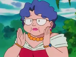 Madame Muchmoney (Japanese: カネヨ Kaneyo) is a recurring character in the Pokémon anime. Her Snubbull ran away from her and followed Ash and his friends as well as Meowth though Johto, and returned to her after evolving in The Trouble With Snubbull.