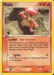 Magby (Japanese: ブビィ Buby) is a Fire-type Basic Pokémon card. It is part of the EX Legend Maker expansion.