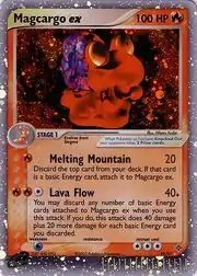 Magcargo ex (Japanese: マグカルゴex Magcargot ex) is a Fire-type Stage 1 Pokémon-ex card. It is part of the EX Dragon expansion.