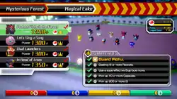 Magical Lake (Japanese: しんぴの湖 Mystery Lake) is the 13th area in Pokémon Rumble U. It is available after the player clears Verdant Plaza. In this area, the player fights four bosses - Zoroark, Wigglytuff, Infernape, and Garchomp. One stage, called Protect Pichu in the Forest, is available immediately; clearing it makes both Let's Sing a Song and Dual Launchers available; completing either of these makes In Need of Trees available.