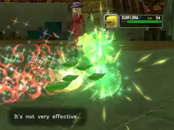 Sunshine Form Cherrim spins its body around and releases glowing light green leaves from its body at the opponent. | ||