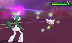 Gardevoir releases multiple light green glowing leaves at the opponent. | ||
