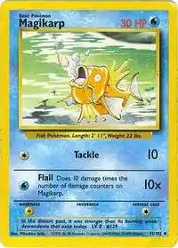 Magikarp (Japanese: コイキング Koiking) is a Water-type Basic Pokémon card. It was first released as part of the Base Set.
