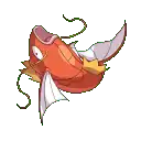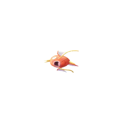 Magikarp is a fishlike Pokémon with large, heavy reddish-orange scales. It has large, vacant eyes and pink lips. Its pectoral and tail fins are white. On its back is a stiff, three-peaked yellow fin, resembling a crown; there is an identical fin on its underside. It also has long barbels. The barbels are white on a female and pale-yellow on a male. A long-lived Magikarp is able to utilize its immense splashing power to leap high enough to scale mountains. It also has a strong enough immune system to survive in the most polluted of waters. However, it is usually overlooked by Trainers because of its perceived weakness: even in the heat of battle, it will do nothing but flop around. It is believed that the ancestors of Magikarp were actually much stronger than modern Magikarp, and this led scientists to research this species.