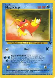Magikarp (Japanese: コイキング Koiking) is a Water-type Basic Pokémon card. It is part of the Team Rocket expansion.