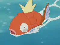 The Magikarp salesman, as his title implies, has a large amount of these Magikarp to sell to customers for ridiculously high prices. He usually manages to sell them by telling the customer that they could sell the Magikarp hatched from this Magikarp's Eggs, as well as Magikarp hatched from those Magikarp's eggs and so forth, resulting in the potential customer getting rich. In reality, however, Magikarp is a completely useless Pokémon which cannot provide riches to anyone except for the Magikarp salesman himself, due to the ridiculous prices at which he sells his Magikarp. Sometimes, the Magikarp salesman has also tried to sell his Magikarp by disguising them as Feebas and telling to the customer that it would evolve into Milotic, the most beautiful Pokémon in the world. Oddly, he has never tried any sort of similar tactic with selling Magikarp as is, by informing the customer that it would evolve into the powerful Gyarados. In Ya See We Want an Evolution!, he also tried to offer some special gifts for the customer if they bought a Magikarp. | ||