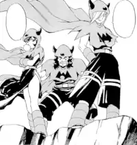 The members of the Three Fires has a special memory-recording lighter in the horns of their outfits than can burn the memories of its holder onto paper. The three lighters can also link up and mix their memory data with each other. Each member also utilizes a different aspect of fire, with Tabitha using smoke to incapacitate opponents, Courtney using flames to create fires and Blaise using heat to cause his opponents to hallucinate.