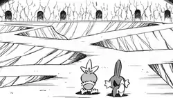 Magma Cavern was the location where Ginji and Mudkip headed in order to meet Ninetales and find out if Ginji was truly the cursed human causing natural disasters. They finally reached the Magma Cavern in Why I Became a Pokémon. The Answer Finally Revealed!!, but were surprised by the arrival of Team A.C.T., who had come to take Mudkip away. Refusing to be taken away, Ginji and Mudkip engaged in a battle against the Gold Rank team, but soon Ninetales arrived, halting the fight. Ninetales then revealed that the real cursed human being was actually Gengar, whose appearance in the Pokémon world was resulting in Groudon's awakening, thus causing all the natural disasters that had happened recently.