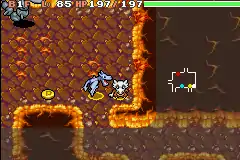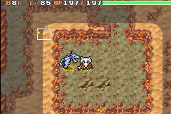Monster Houses may appear on floors 8-20. Shops may appear on floors 2-6. There is a chance of finding a buried item in floor 1 of Magma Cavern Pit. Darkness shrouds all floors, limiting field of sight to 2 tiles in hallways.