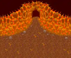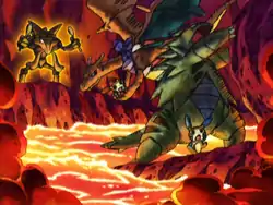 Magma Cavern (Japanese: マグマの地底 Magma Depths) is the fifteenth dungeon in Pokémon Mystery Dungeon: Red Rescue Team and Blue Rescue Team and Pokémon Mystery Dungeon: Rescue Team DX, and the penultimate dungeon to be visited during the game's main storyline. It consists of 23 floors and ends in Magma Cavern Pit (Japanese: マグマの地底 最下層 Magma Depths - Bottom Layer), where Groudon resides. Once the player completes Uproar Forest and finishes at least four missions, Pokémon Square will form a team to rescue Alakazam's team, which hasn't returned. The dungeon will be unlocked once the player finishes at least two missions after that happens and finishes the Team Base.