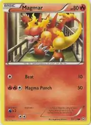 Magmar (Japanese: ブーバー Boober) is a Fire-type Basic Pokémon card. It is part of the Dragons Exalted expansion.