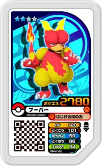 Magmar (Japanese: ブーバー Boober) is a Grade 2 Pokémon Ga-Olé disk. It is part of the fourth Grand Rush set.
