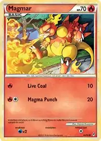 Magmar (Japanese: ブーバー Boober) is a Fire-type Basic Pokémon card. It was first released as part of the Unleashed expansion.