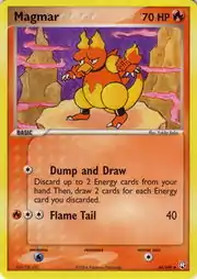 Magmar (Japanese: ブーバー Boober) is a Fire-type Basic Pokémon card. It is part of the EX Team Rocket Returns expansion.