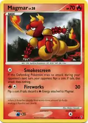 SmokeScreen is a move in the Pokémon games that Magmar can learn. This card's Pokédex entry comes from Pokémon Platinum.