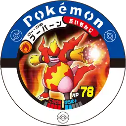 Magmortar (Japanese: ブーバーン Booburn) is a Pokémon Battrio puck. It is part of the Mysterious Mew expansion.
