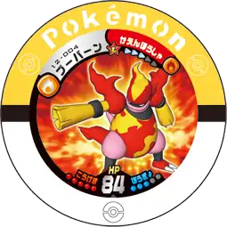 Magmortar (Japanese: ブーバーン Booburn) is a Pokémon Battrio puck. It is part of the Sky-Tearing Rayquaza expansion.