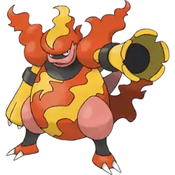 It evolves from Magmar when traded while holding a Magmarizer. It is the final form of Magby.