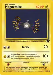 Magnemite (Japanese: コイル Coil) is a Lightning-type Basic Pokémon card. It is part of the Team Rocket expansion.