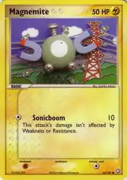 Magnemite (Japanese: コイル Coil) is a Lightning-type Basic Pokémon card. It is part of the EX Team Rocket Returns expansion.