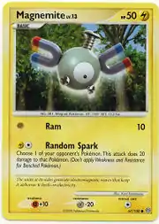 Magnemite (Japanese: ピチュー Coil) is a Lightning-type Basic Pokémon card. It is part of the Stormfront expansion.