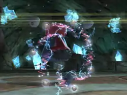 Magnezone's body becomes surrounded by sparks of light blue electricity. Its magnets then flash light blue, firing multiple light blue orbs of energy from them at the opponent. | ||