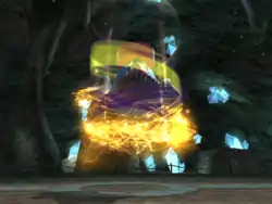 Electrode emits yellow sparks of electricity from its body, raising it off the ground. It can also make pieces of the battlefield float in the air. | ||