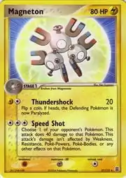 Magneton (Japanese: レアコイル Rarecoil) is a Lightning-type Stage 1 Pokémon card. It was first released as part of the EX FireRed & LeafGreen expansion.