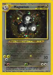 Magneton (Japanese: レアコイル Magneton) is a Metal-type Stage 1 Pokémon card. It is part of the Neo Revelation expansion.